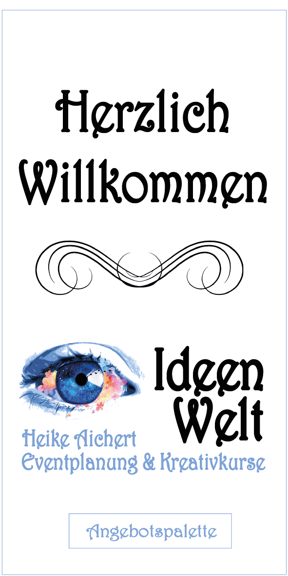 Im Rahmen der Eventplanung habe ich unterschiedliche Pakete für Sie zusammengestellt, aus denen Sie nach Ihren Wünschen auswählen können. Kreativ-Kurse finden ab sofort bei einigen Veranstaltern auch online statt. Sie finden diese Information unter dem Namen des jeweiligen Veranstaltungsortes in der Rubrik Kreativ-Kurse.